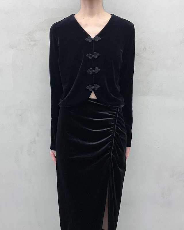 gather slit velour skirt
