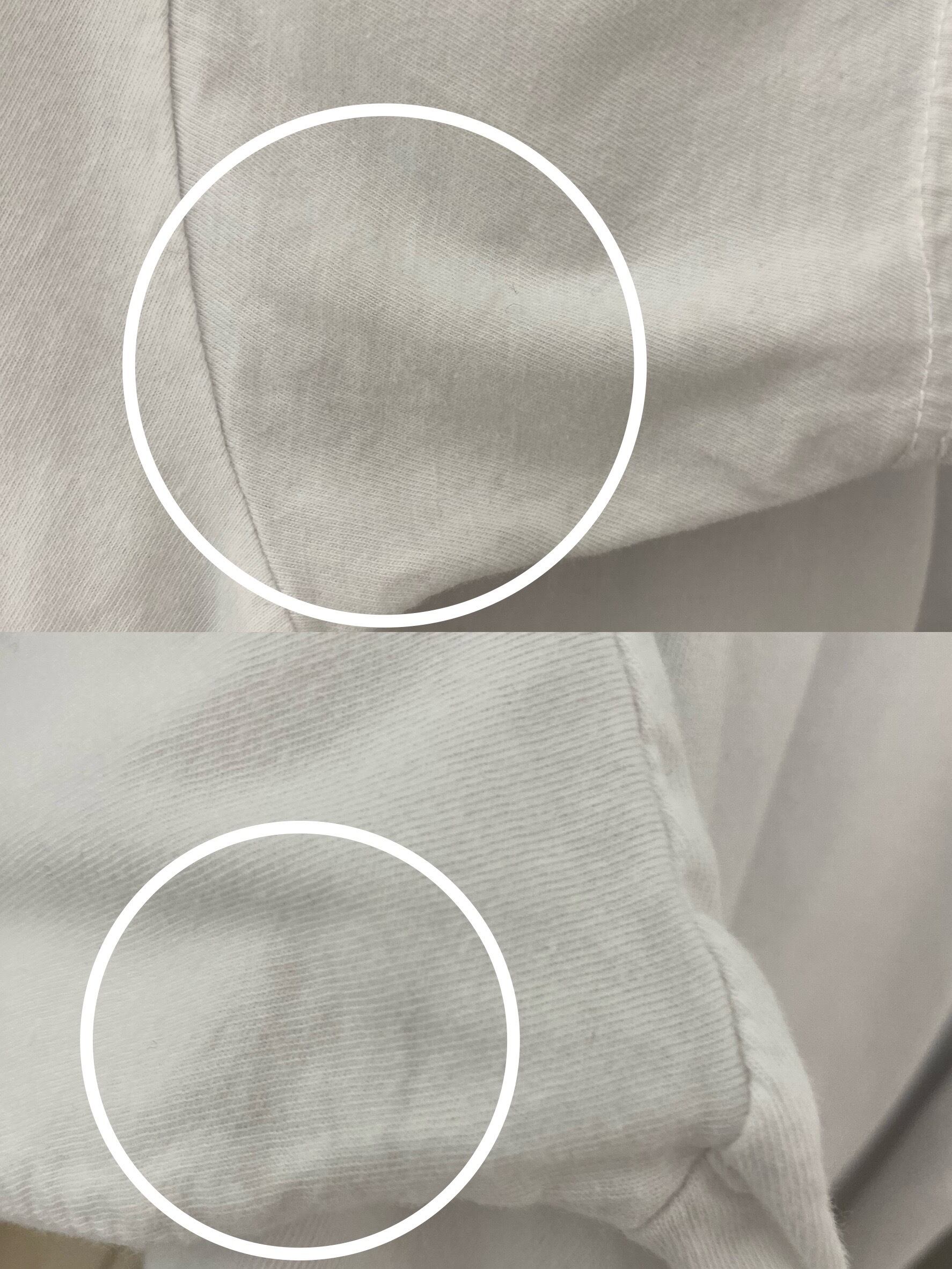前身頃下、左脇、首元汚れあり