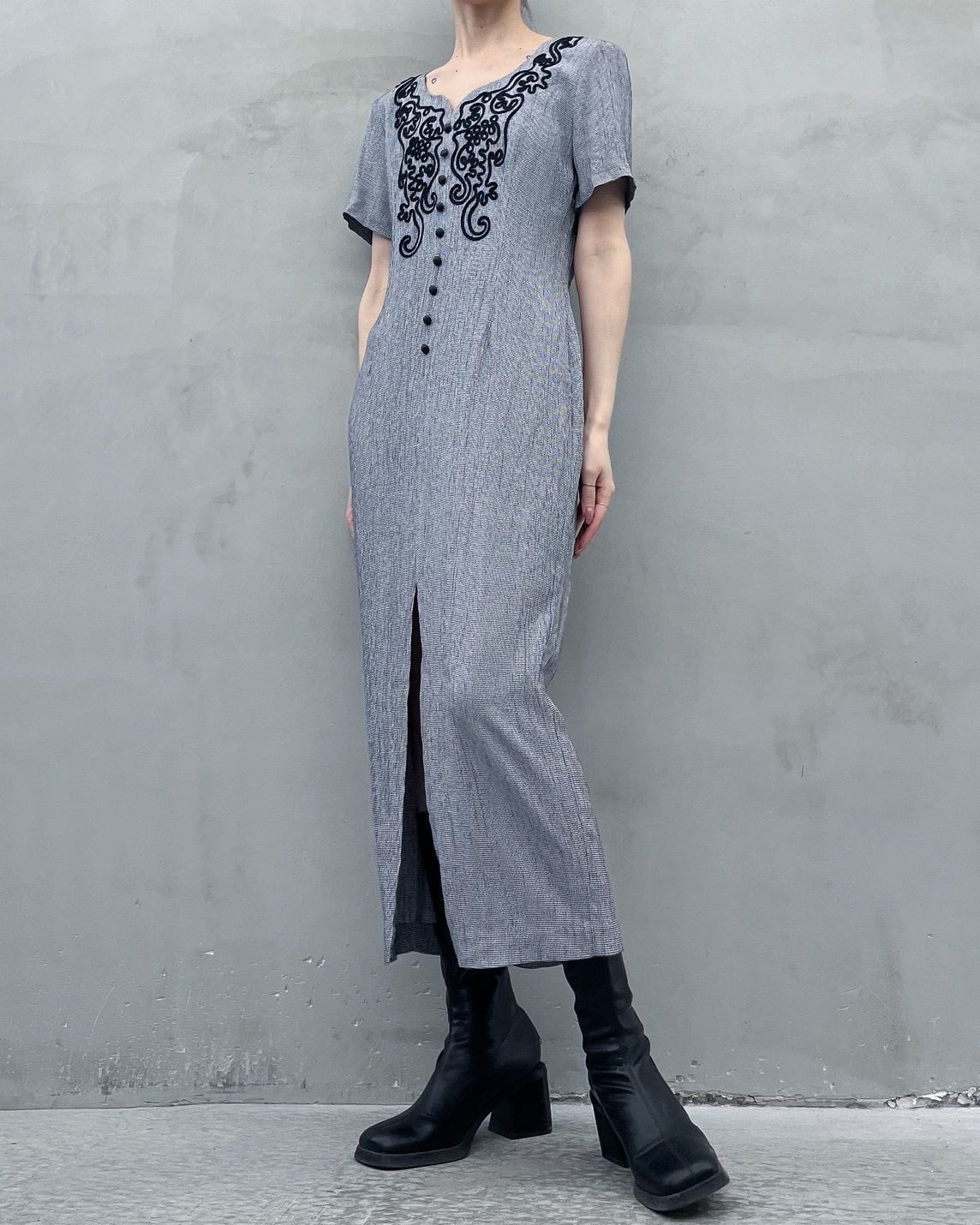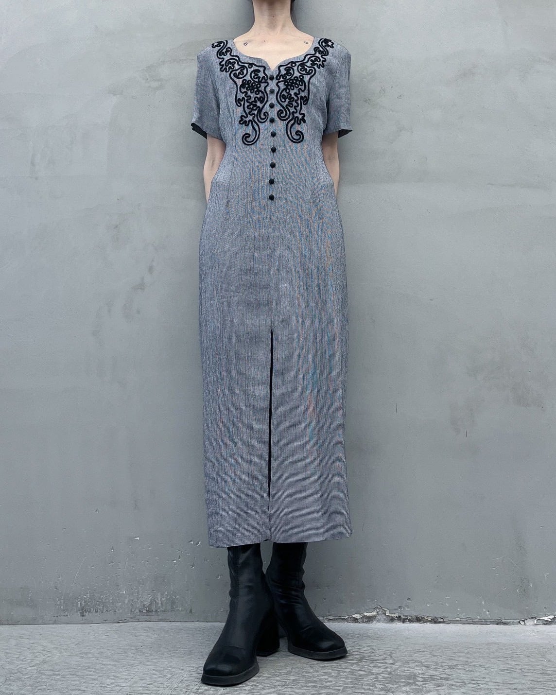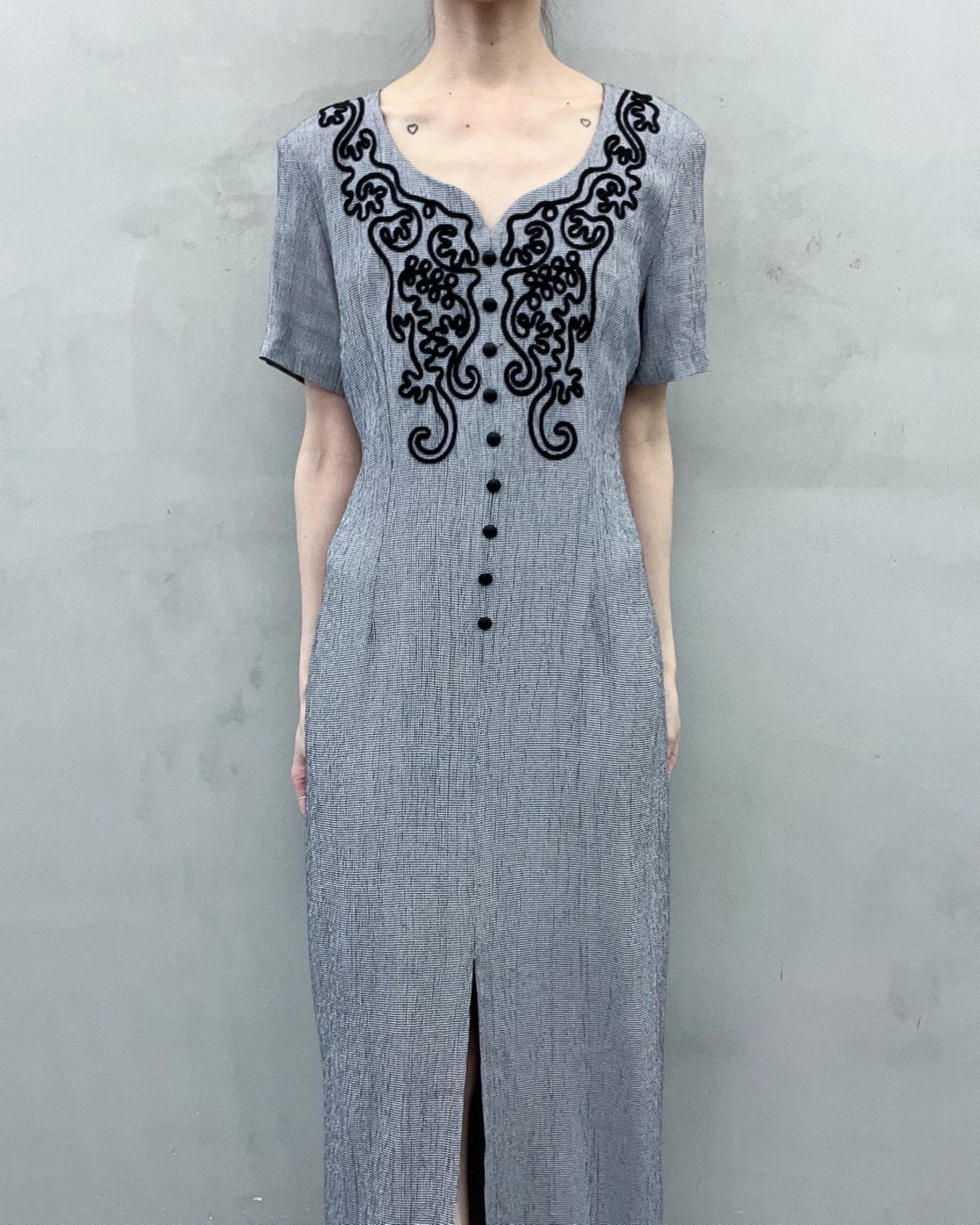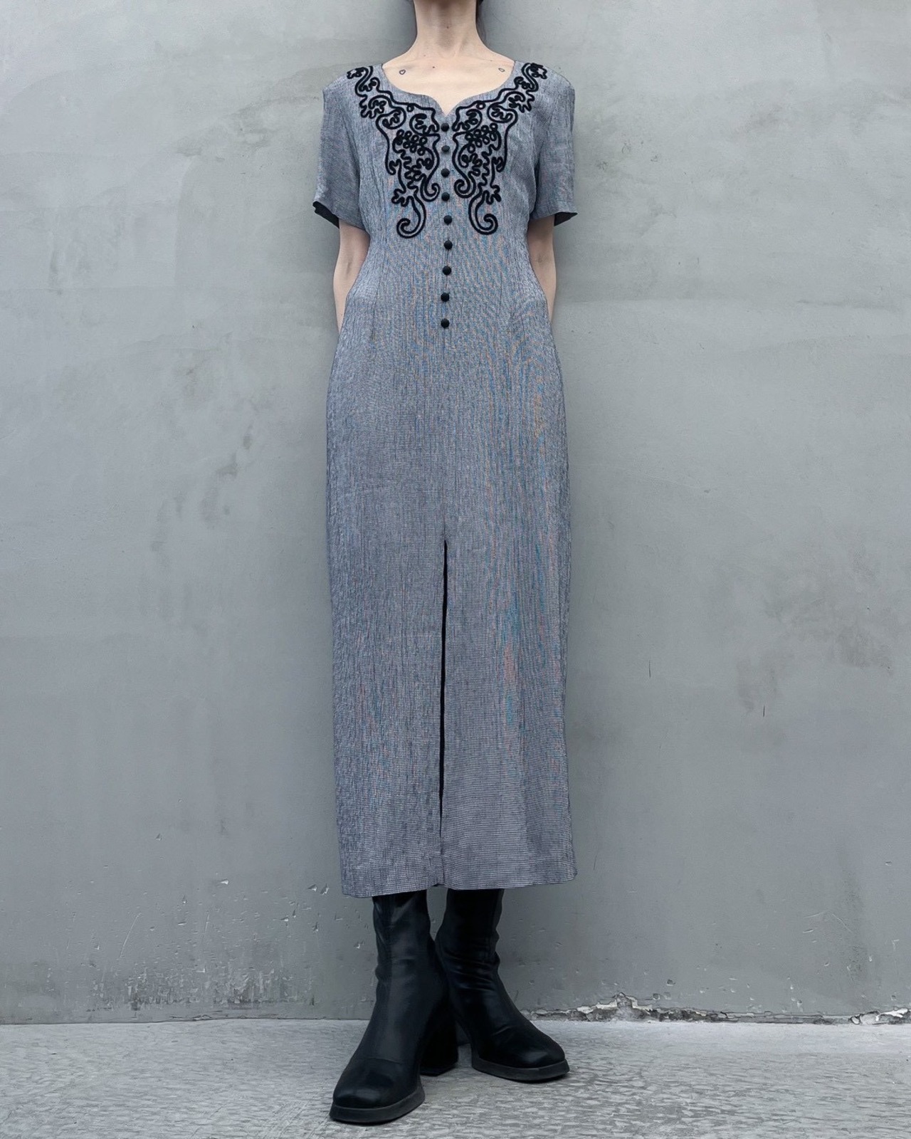 cord embroidery one-piece
