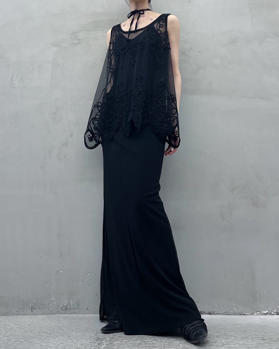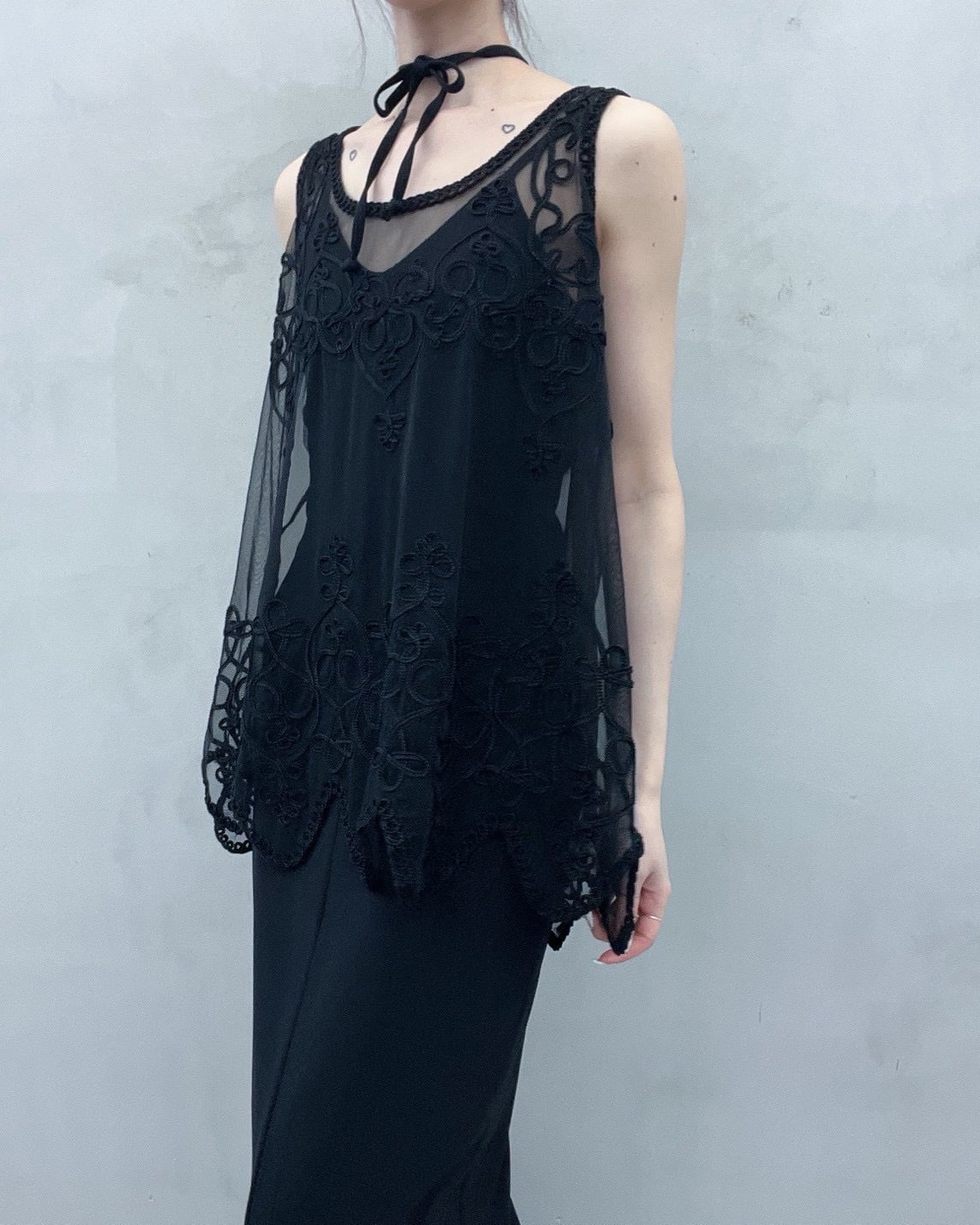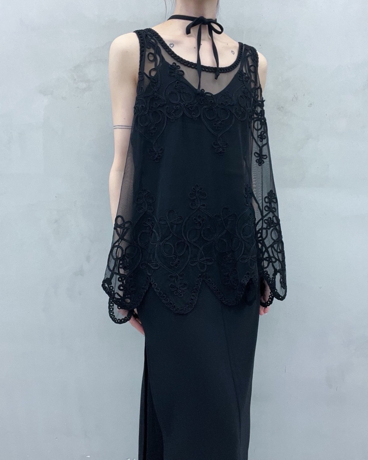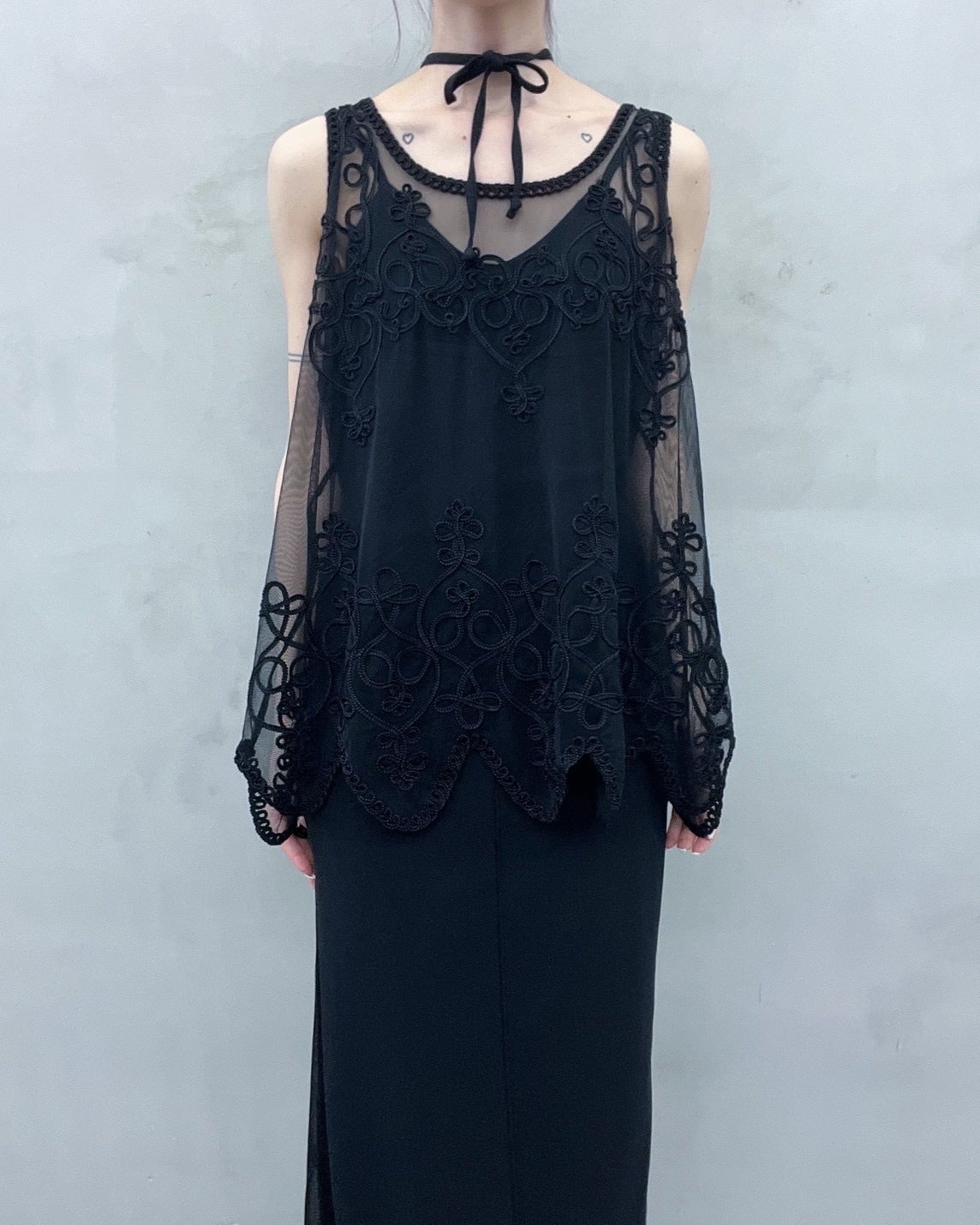 cord embroidery sheer tops