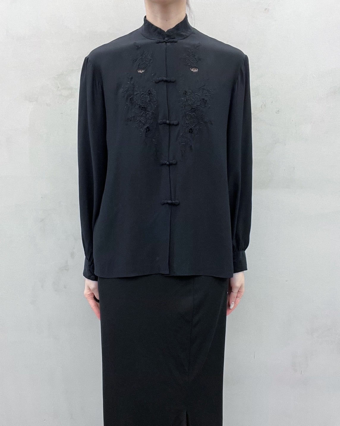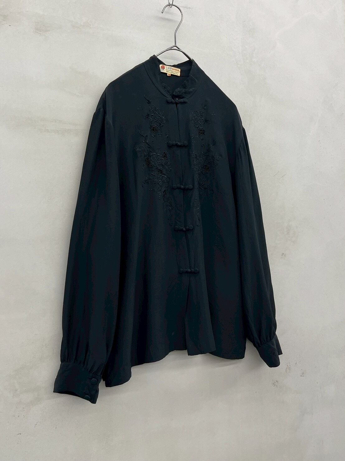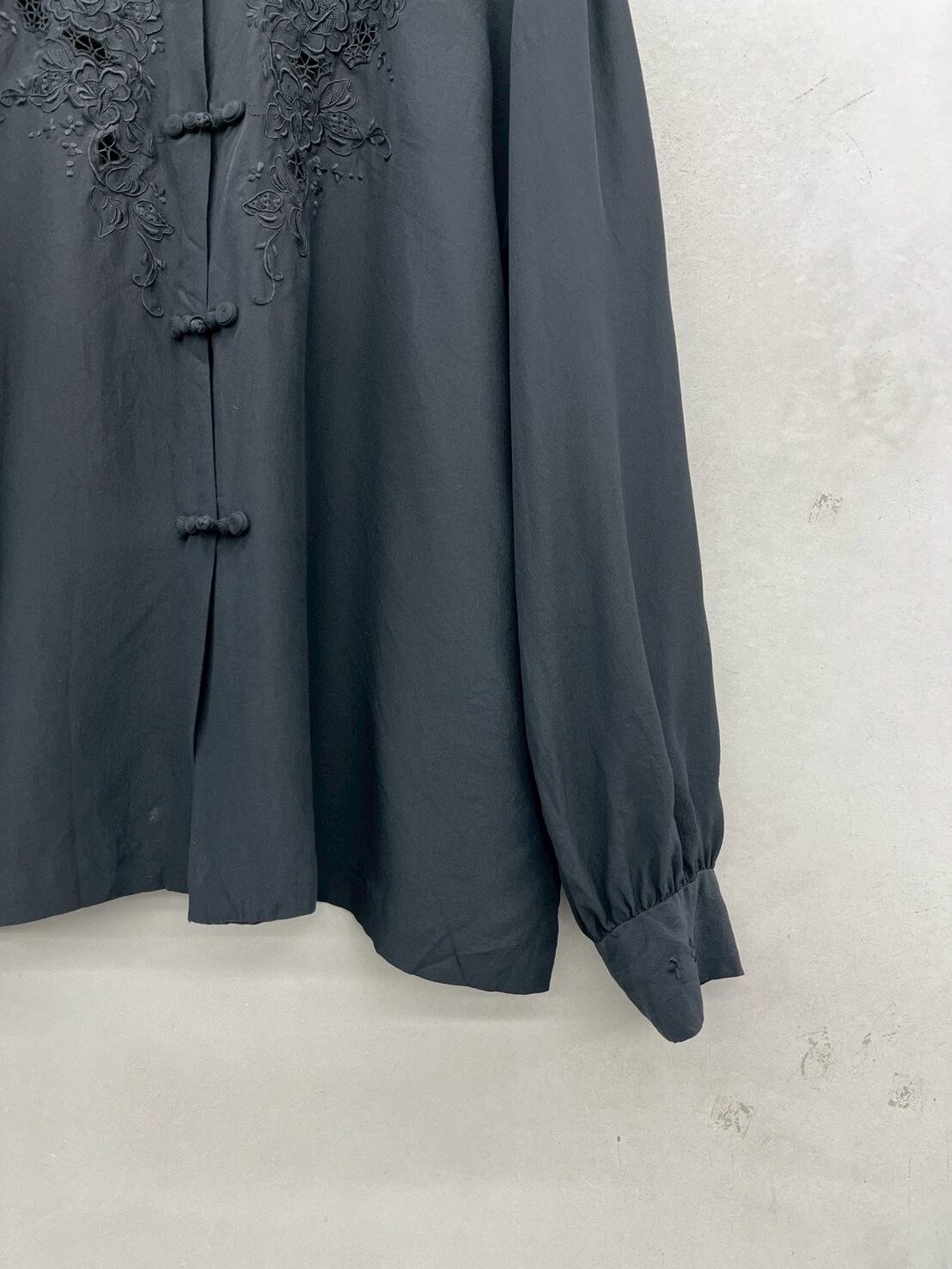 china button embroidery silk blouse