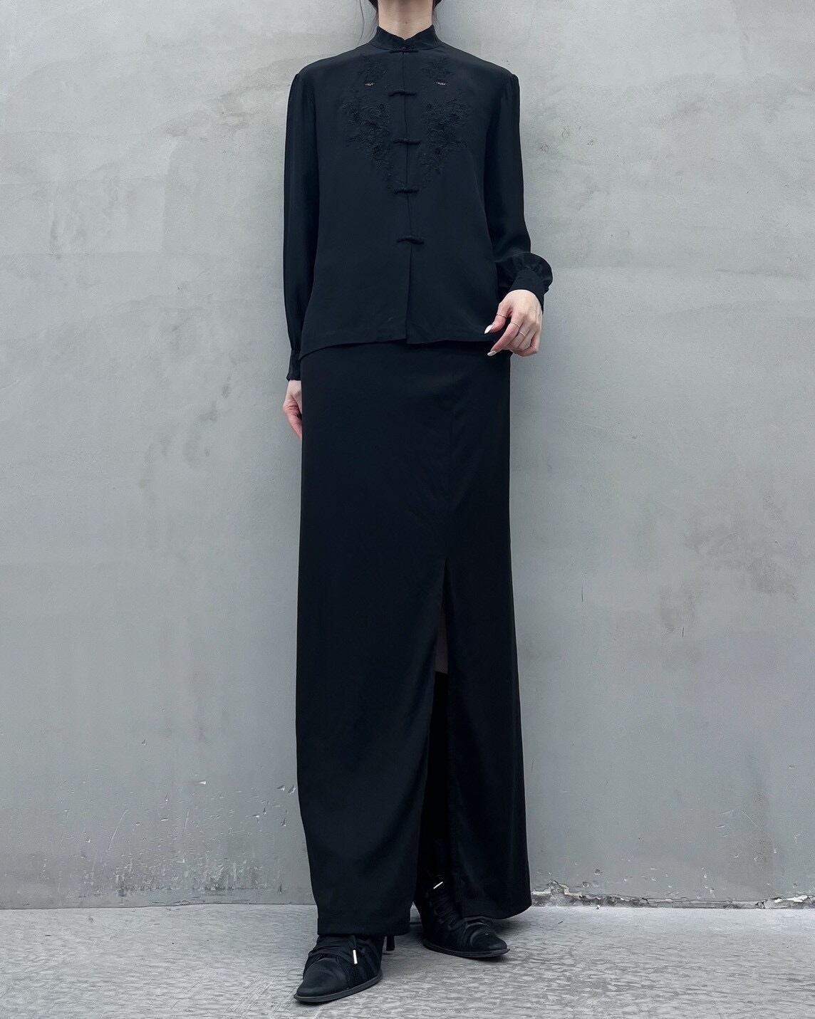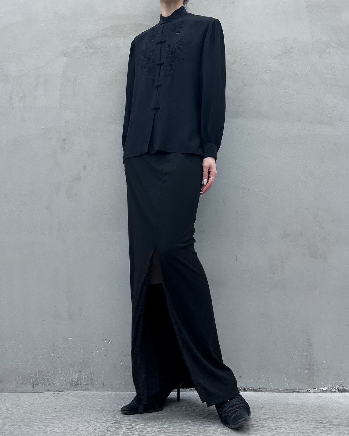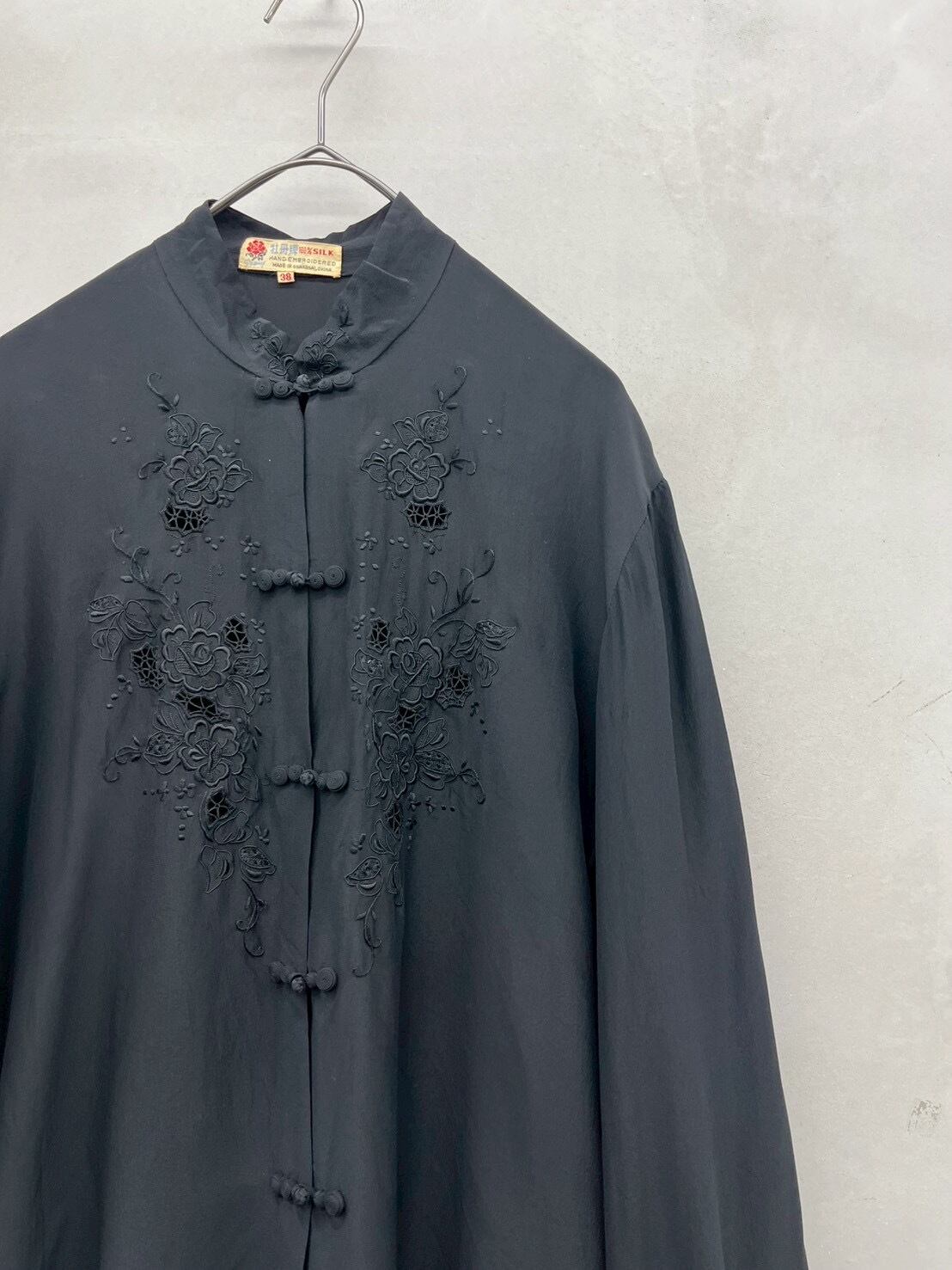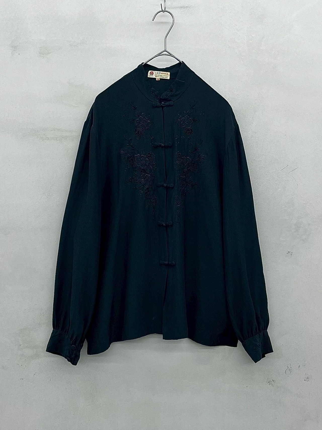 china button embroidery silk blouse