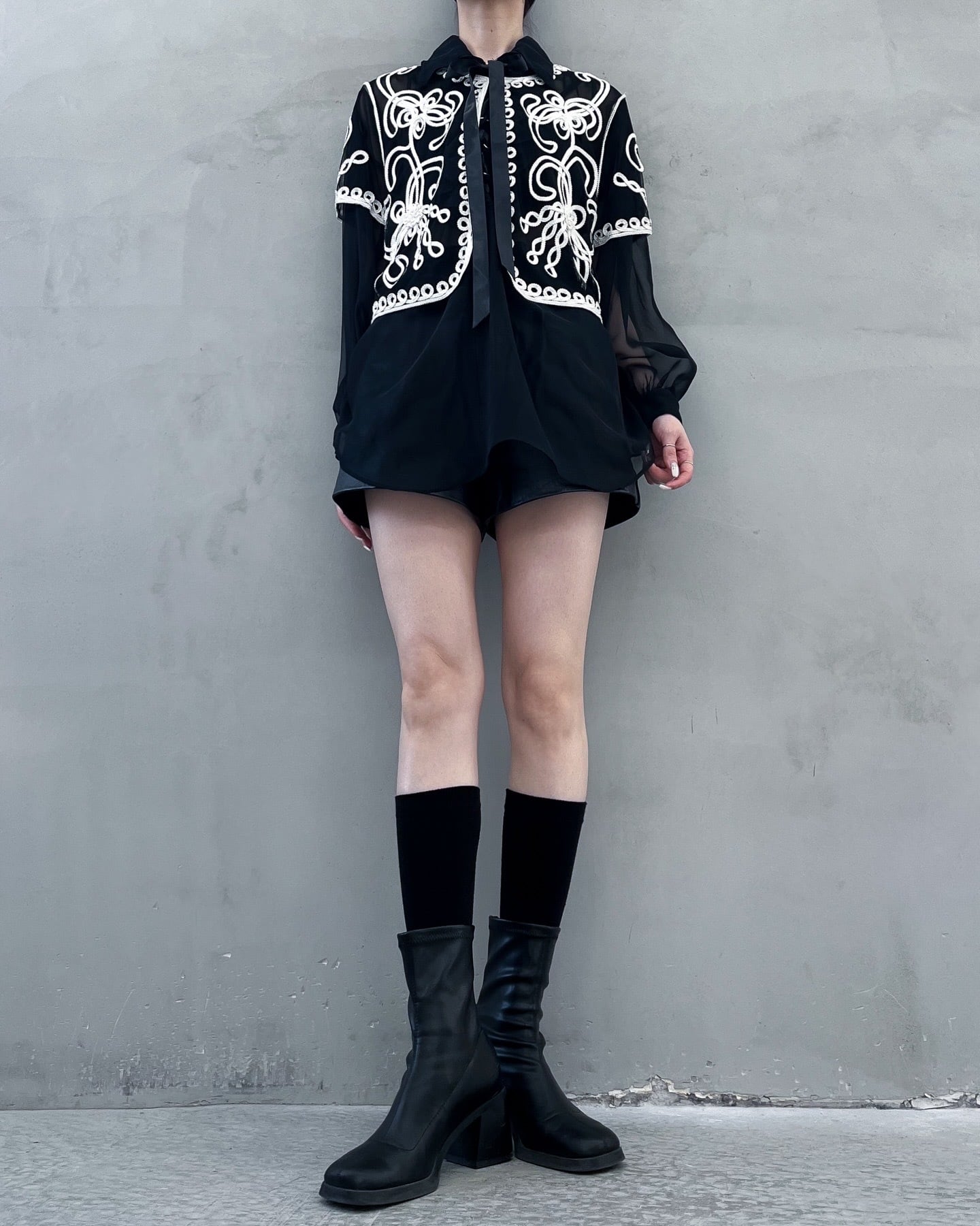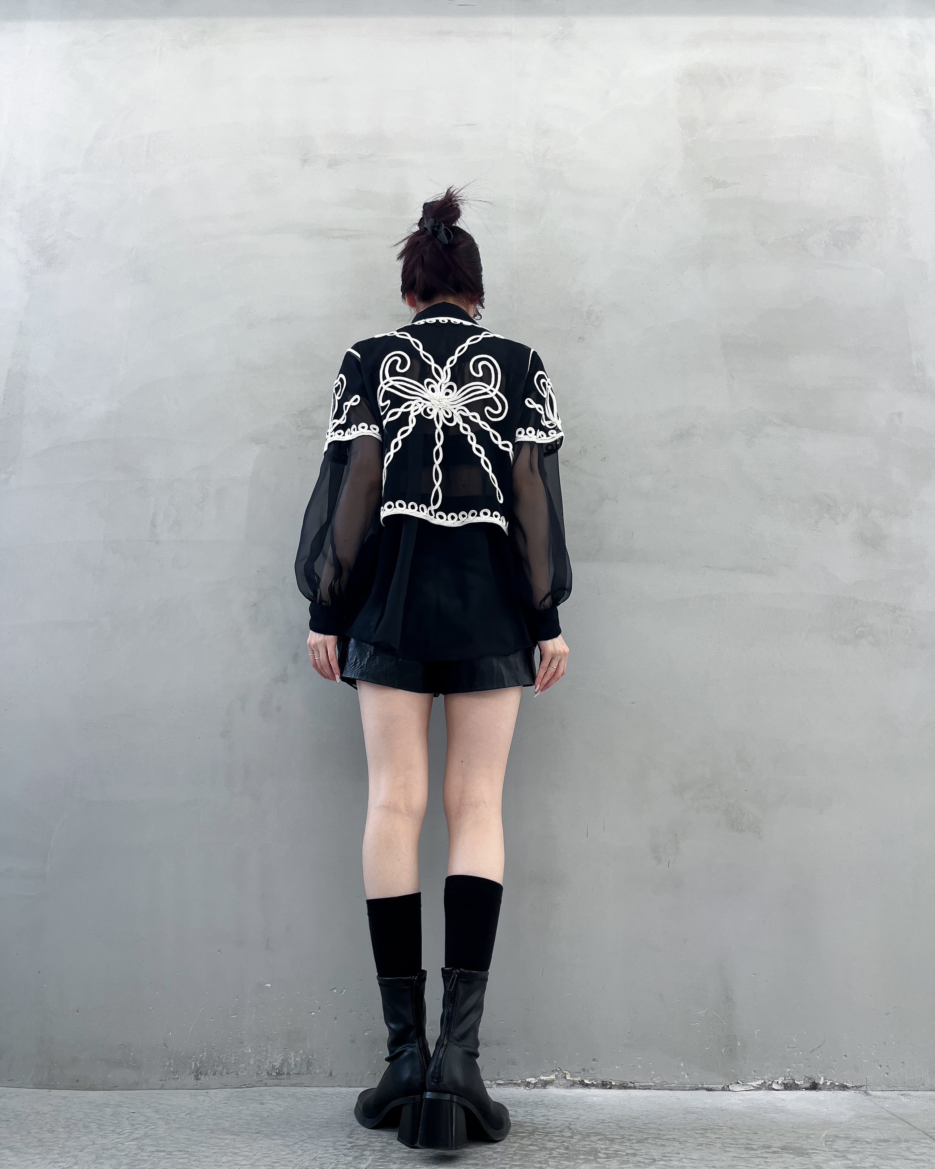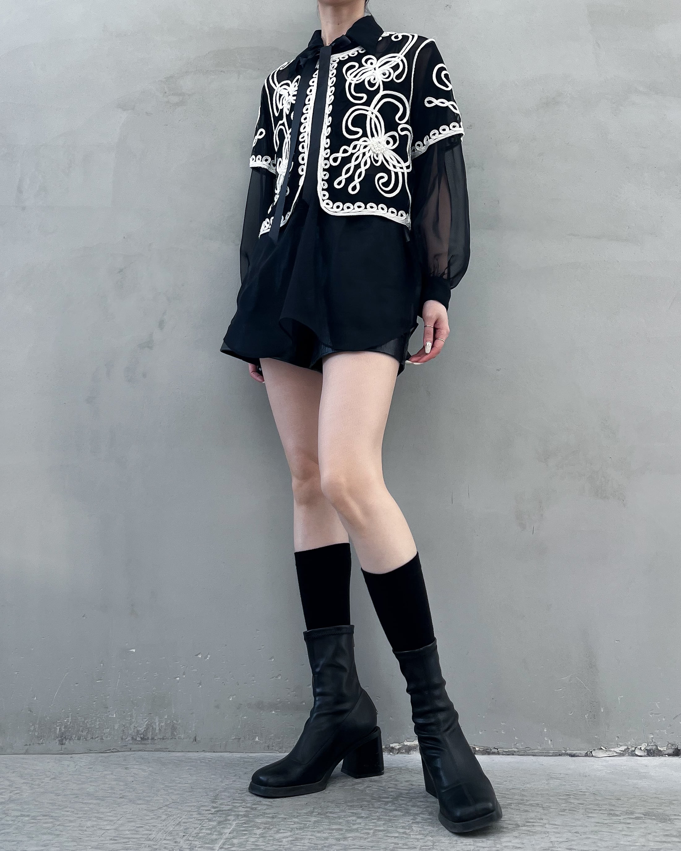 lace-up sheer blouse
